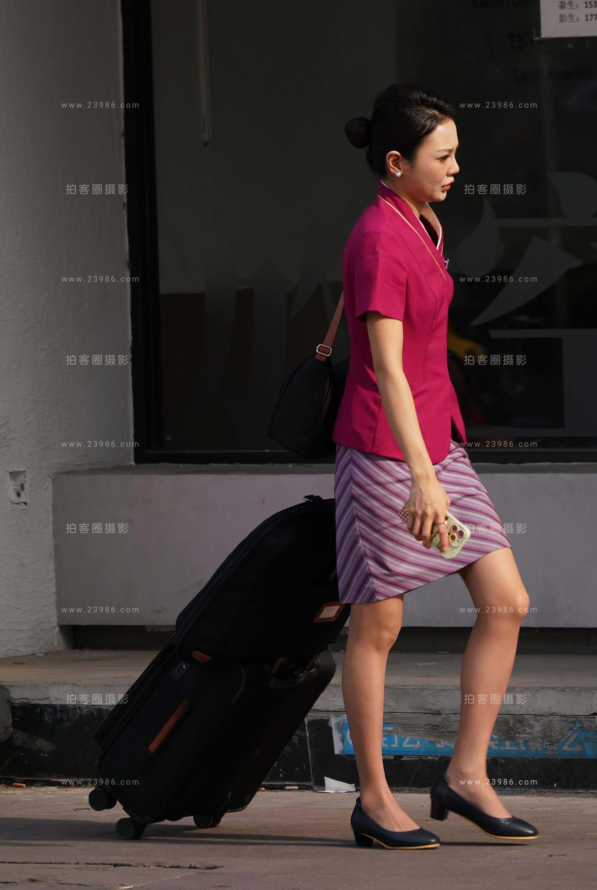 4k视频,偶遇东航精致颜值超薄棕色丝空姐