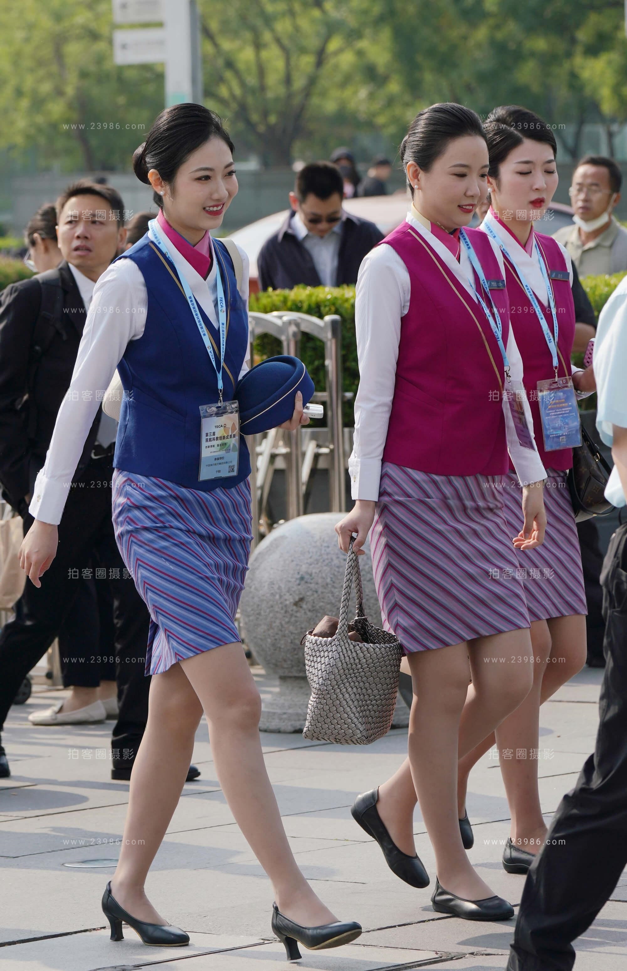 25最新空姐街拍-阳光下南航丝袜的光泽很不错