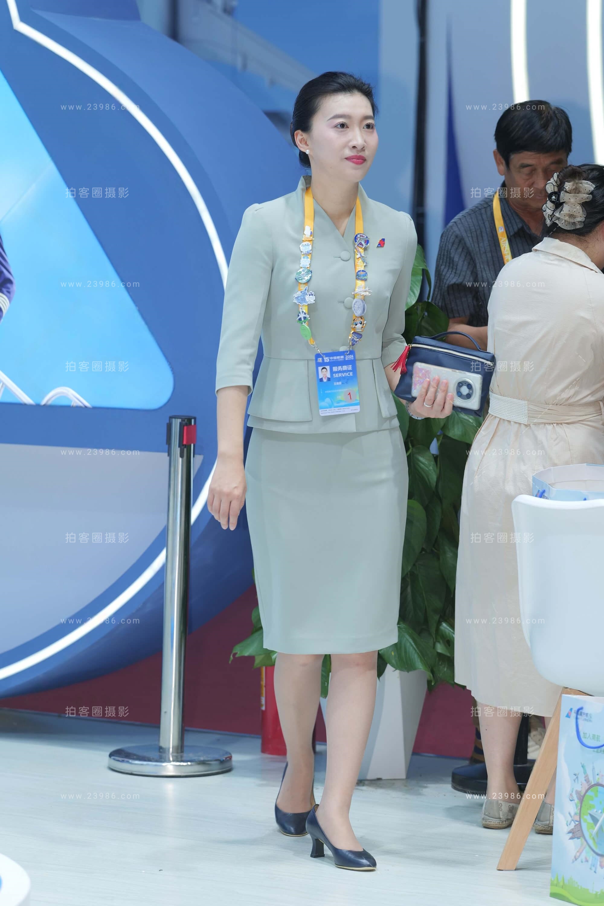 25空姐展会-机场的职业装灰丝美女