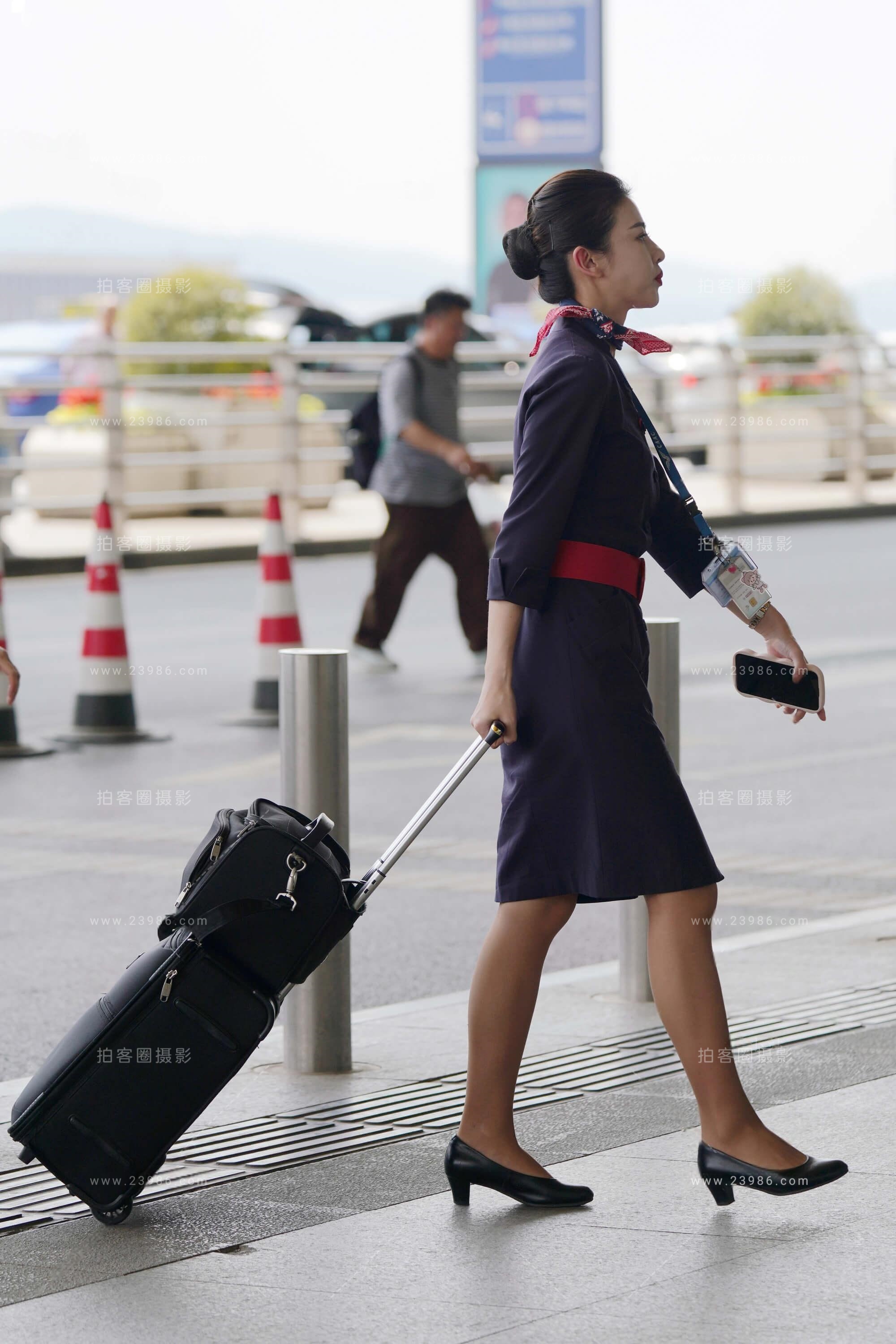 25最新空姐街拍-深航空姐深咖色丝袜空姐