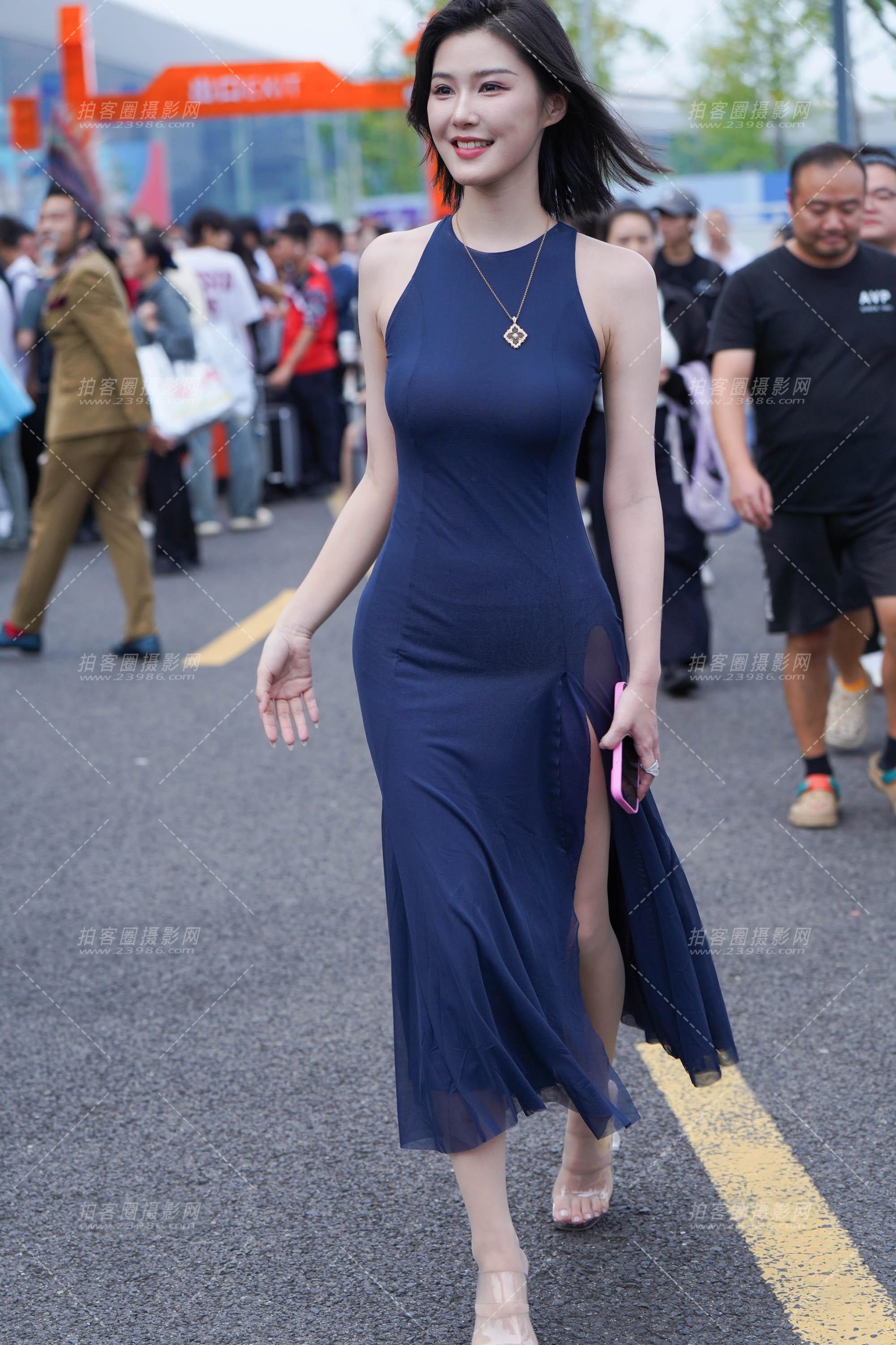 宝蓝裙的美