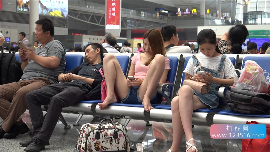 4K - 热裤美足凉高跟美女豪放的坐姿